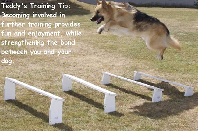 Teddy’s Training Tip: Becoming involved in further training provides fun and enjoyment, while strengthening the bond between you and your dog.